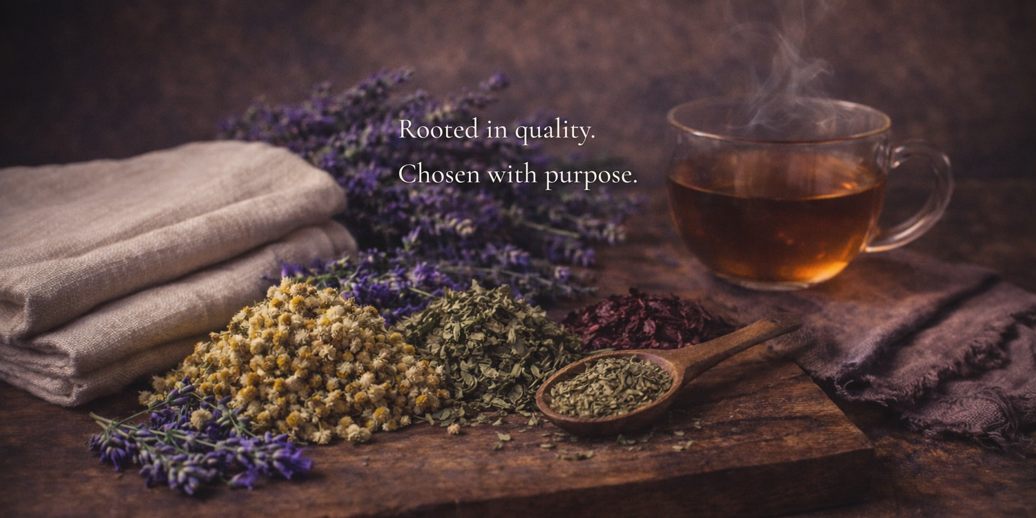 A selection of top-quality loose leaf teas, dried herbs, and botanicals.