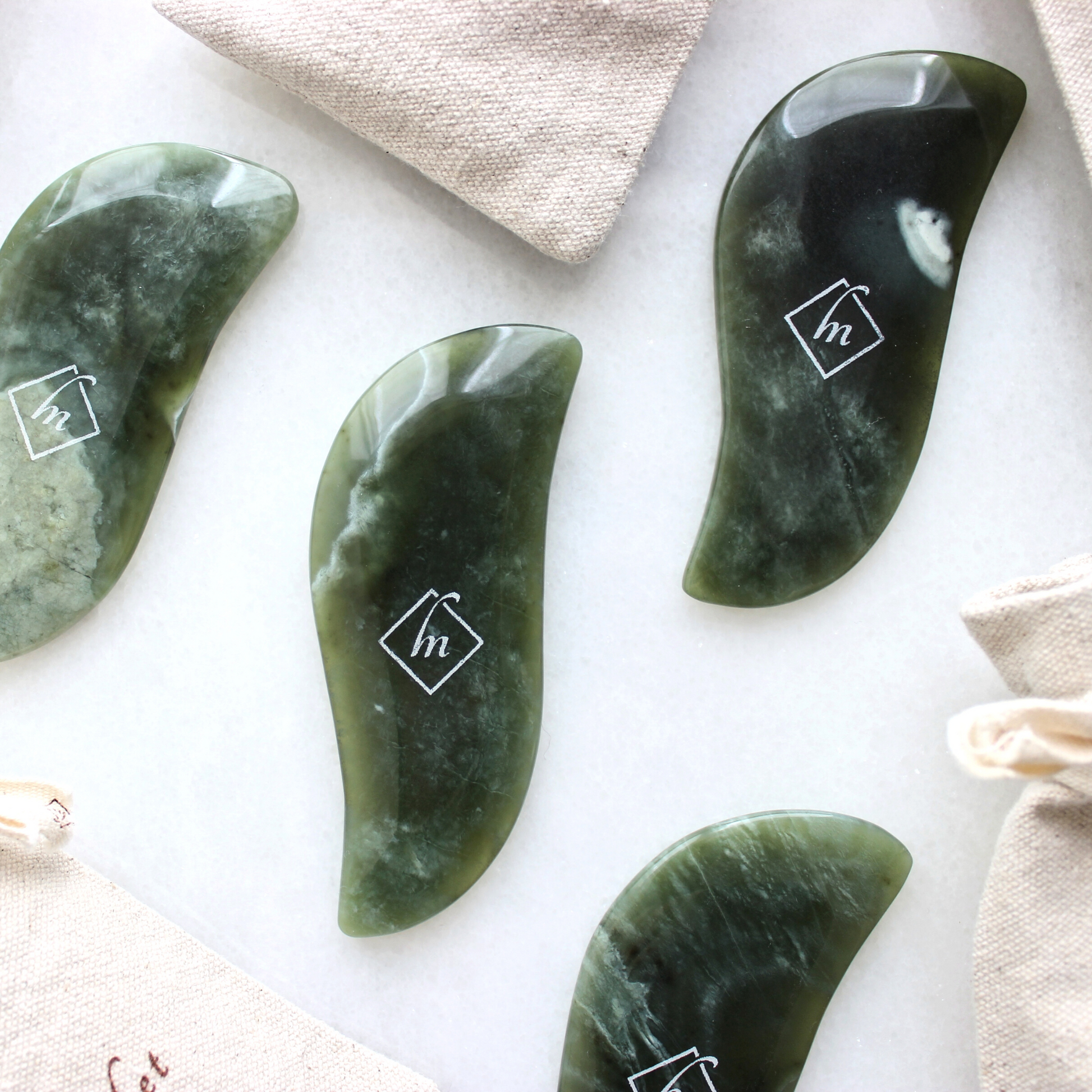 En raison de la nature naturelle de la pierre de jade, chaque gua sha a une apparence différente, avec différentes nuances de vert.